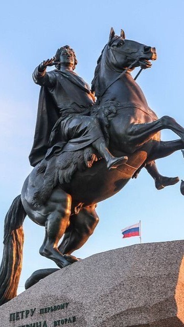 The Bronze Horseman in St. Petersburg is a monument to Peter I. It is located in the park on the Senate Square and is a work of Russian and world culture.